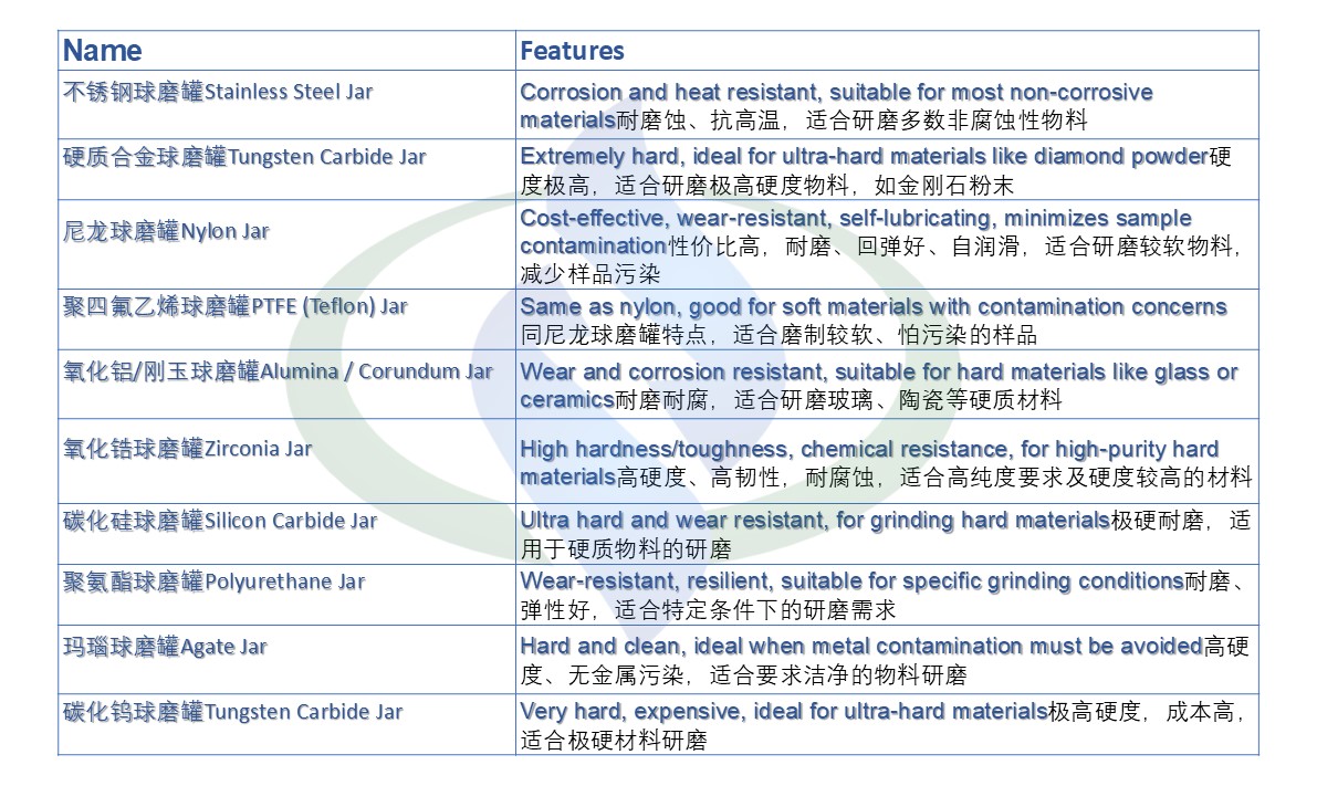 2. Grinding Jar Material: Optional stainless steel, nylon, polyurethane, PTFE, corundum, agate, zirconia, and vacuum jars